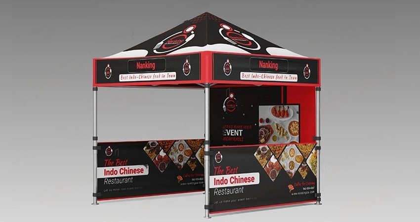 Custom designs, logos, and vibrant color prints on canopies help draw the attention of onlookers and passersby. They act as micro-stores during roadshows.