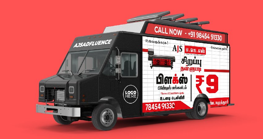 Mobile Van Branding involves wrapping vans with your brand creative and driving them through strategic routes. Unlike static hoardings, mobile branding moves across locations, allowing dynamic targeting. It helps build trust and awareness at the grassroots level.